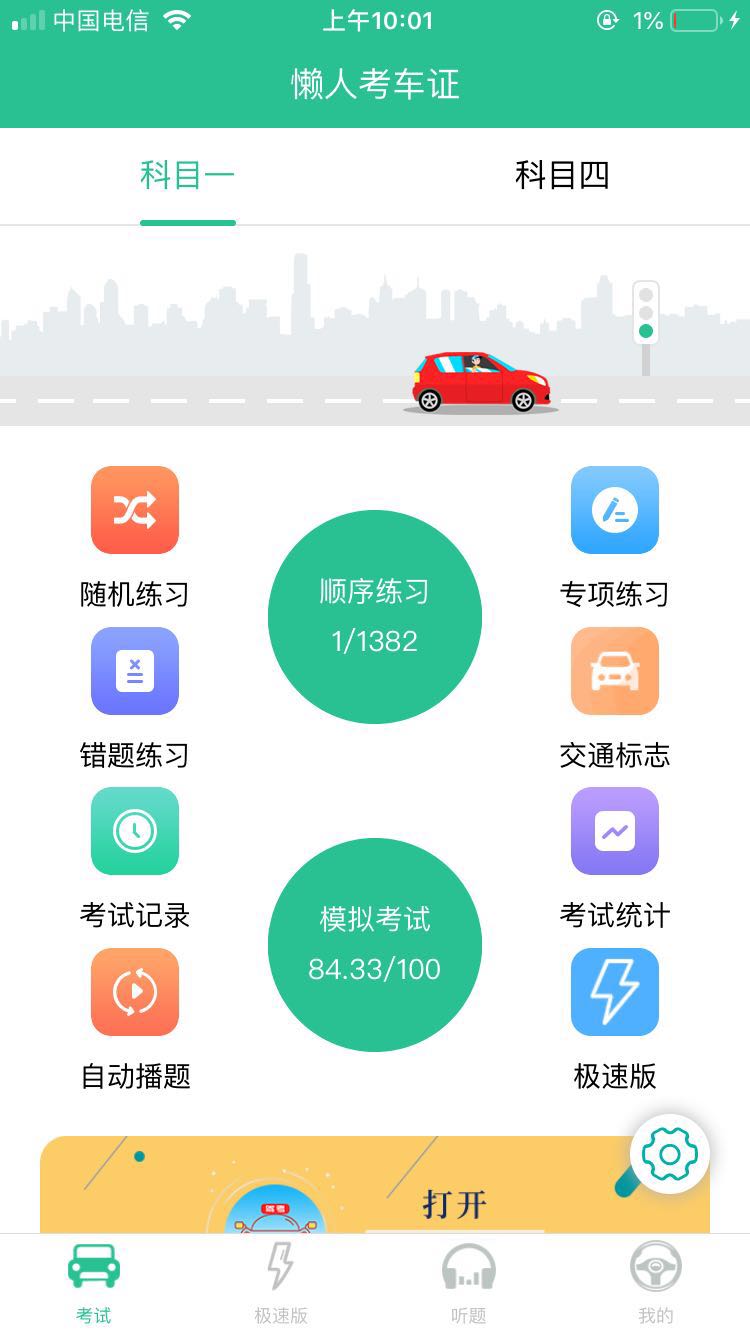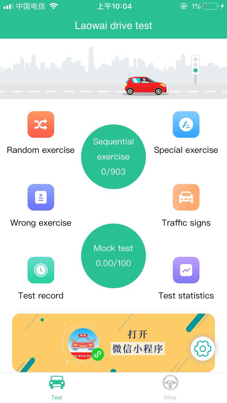 练习模式包括: 顺序练习、随机练习、专项分类练习、错题练习还有模拟考试 还有做题统计、考试统计、交通标志图大全等辅助功能