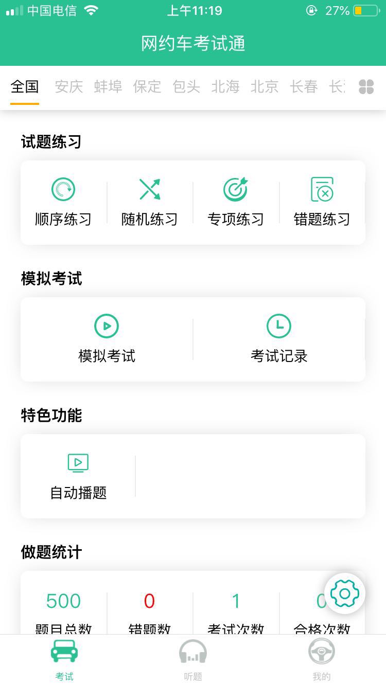 用户可以在线练习全国和各个城市的考试题库