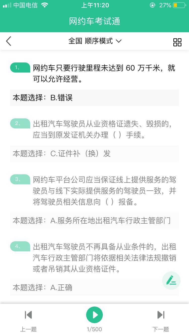 本软件为2020新版网约车考试题库